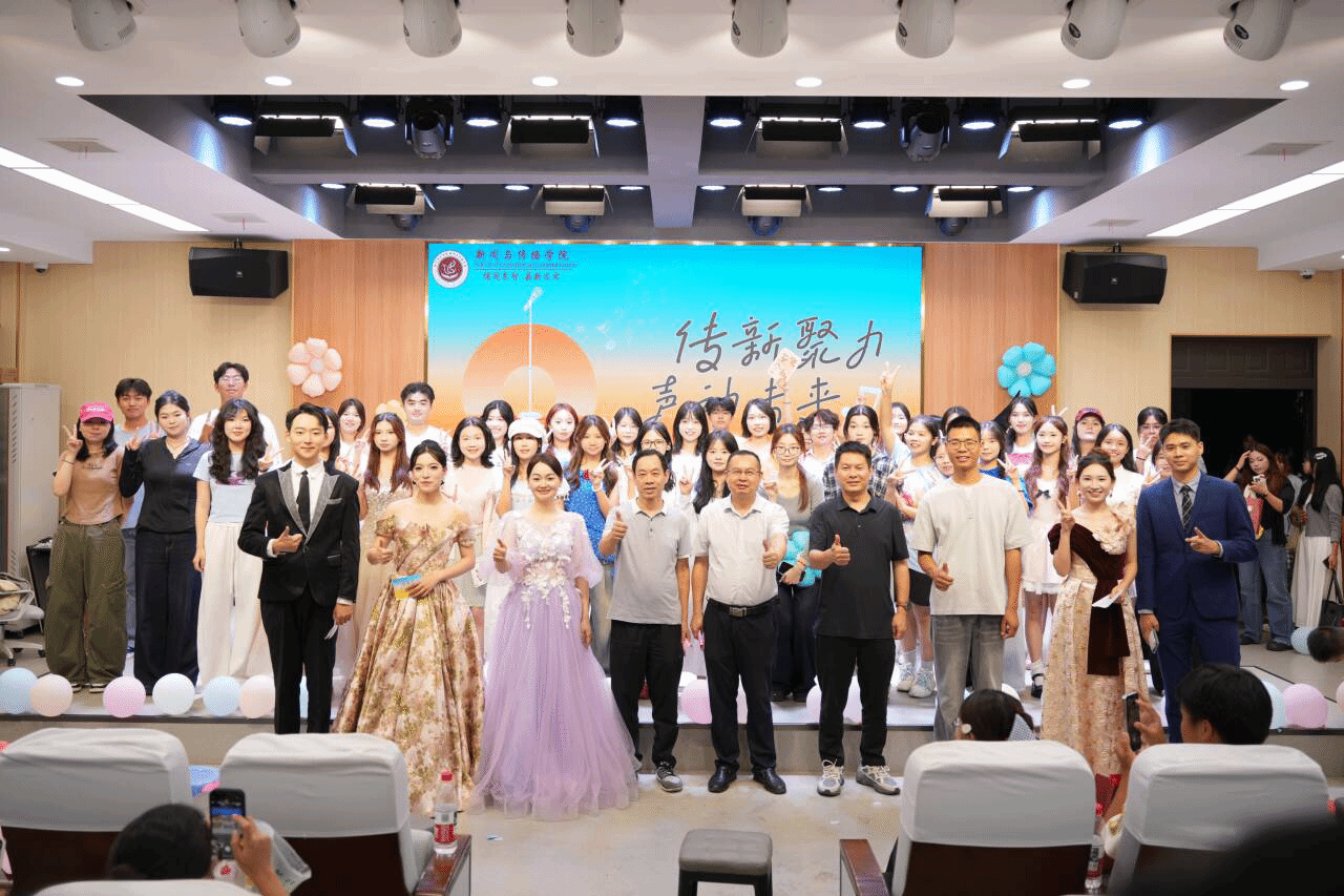 新闻与传播学院党总支书记彭晖、党总支副书记董自雄、副院长罗兵、学工办副主任兼团委书记封伟为、辅导员刘国杰、余民老师以及2025级全体新生参加晚会。