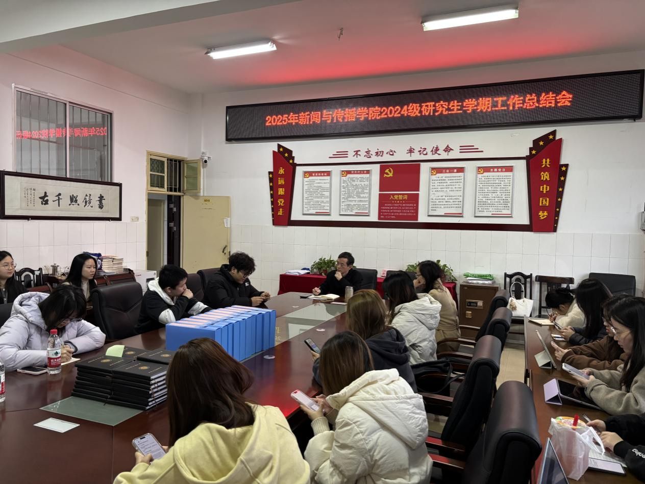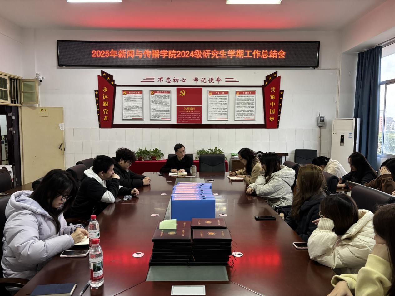 2025 年 12 月 16 日下午 5 时,新闻与传播学院 2024 级研究生学期工作总结会在文科楼 A510 会议室召开。副院长邓庄、熊雅静老师及 2024 级全体研究生参会。