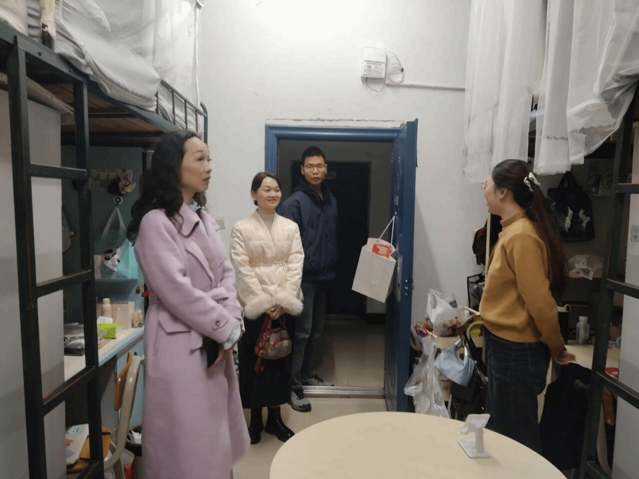 会后,学院党总支书记何芳,学工办副主任兼团委书记封伟为,辅导员刘国杰于12月30日、31日对我院部分学生宿舍进行了随机抽查走访,深入了解学生期末备考、假期规划等情况,并对宿舍用电安全、卫生整洁等方面提出明确要求,为寒假安全工作筑牢基础。
