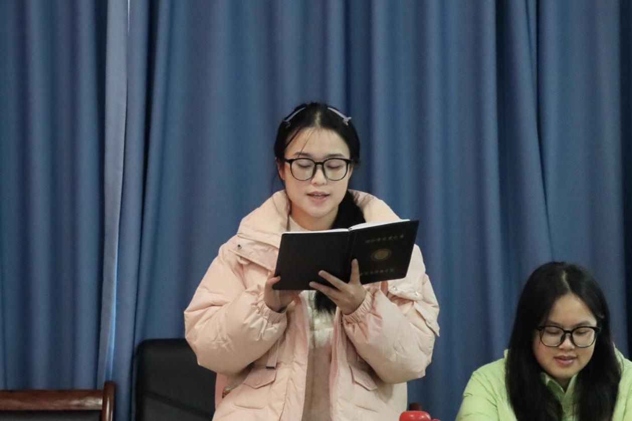 2025年12月23日,新闻与传播学院学生第一党支部在仁智楼 A510 召开民主评议党员会议。本次会议由学生第一党支部组织宣传委员唐虹主持,学生第一党支部书记刘国杰及支部全体党员参加。