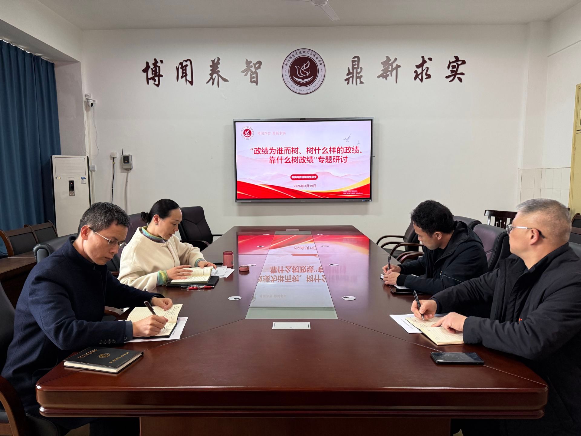 为全面贯彻立党为公、为民造福、科学决策、真抓实干的总要求,把学习研讨作为学习教育的首要任务并贯穿始终,教育引导党员、干部切实增强树立和践行正确政绩观的思想自觉和行动自觉,2026年3月19日,新闻与传播学院党总支于仁智楼A510召开树立和践行正确政绩观专题研讨会。学院领导班子成员出席会议,围绕“政绩为谁而树、树什么样的政绩、靠什么树政绩”核心三问,结合学院发展实际深入研讨、凝聚实干共识。
